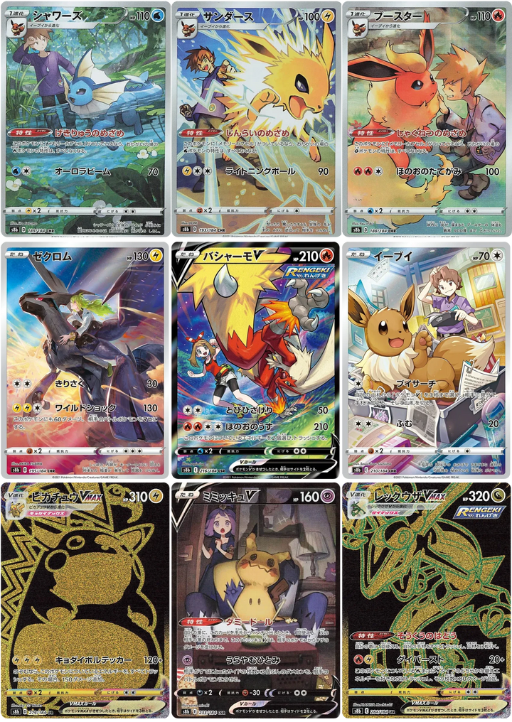 Please note : The image shows Japanese Pokémon cards . The cards shown in the image are not guaranteed and are for illustrative purposes only .